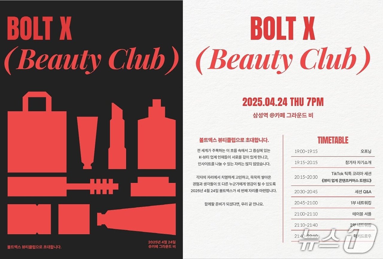 한편 볼트엑스 뷰티클럽은 지난해부터 진행돼 온 '볼트엑스 패션뷰티클럽'의 새로운 이름이다. 그동안 구다이글로벌(조선미녀, 티르티르), CJ올리브영, 에이피알(메디큐브), 더파운더즈(아누아) 등 K-뷰티 산업을 이끄는 기업의 리더들이 참여해 업계에서 높은 호응을 얻어왔다.