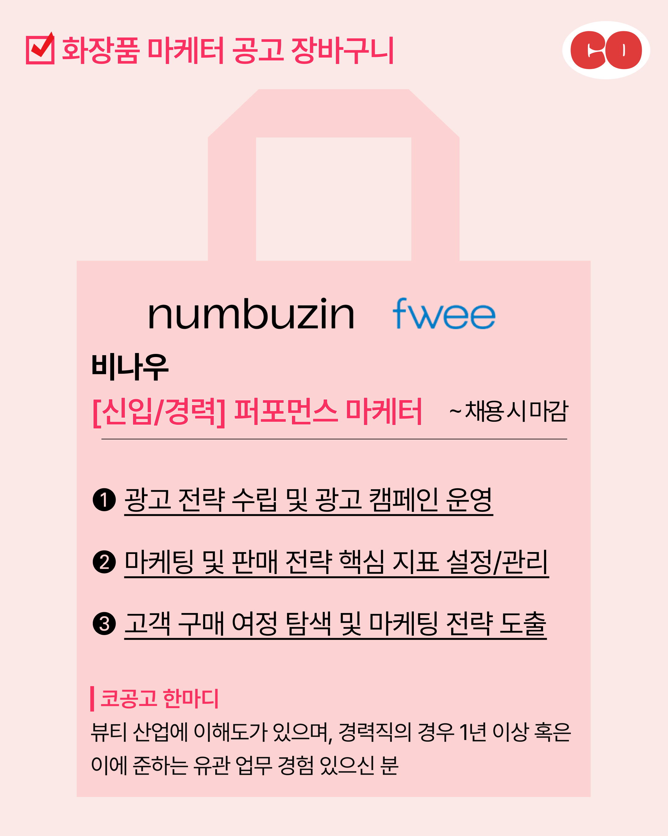 ✔️코공고 가입하고 매일 새로운 뷰티브랜드 채용공고 확인하기!
