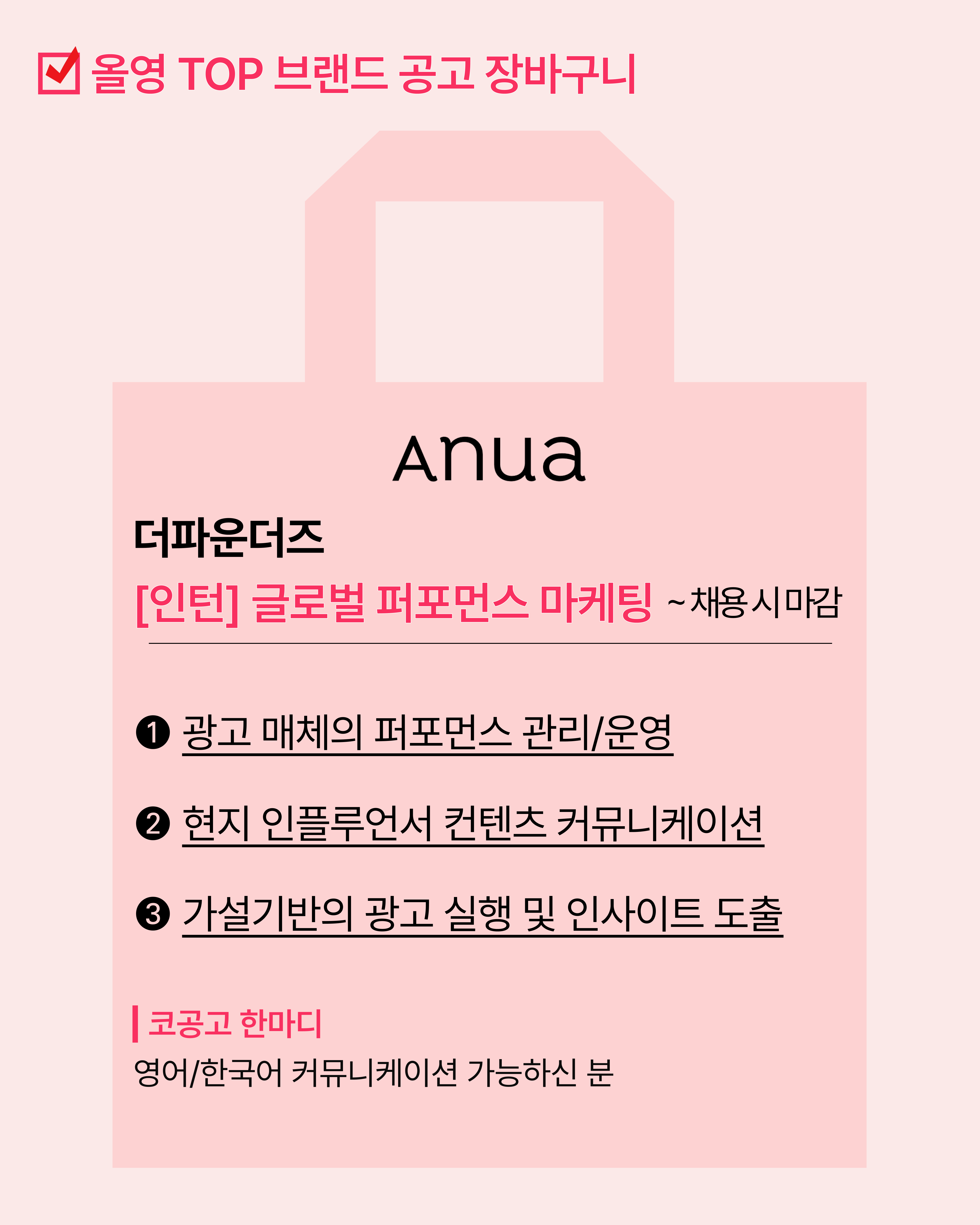 1. 아누아 - 글로벌 퍼포먼스 마케팅 (~ 채용 시 마감)