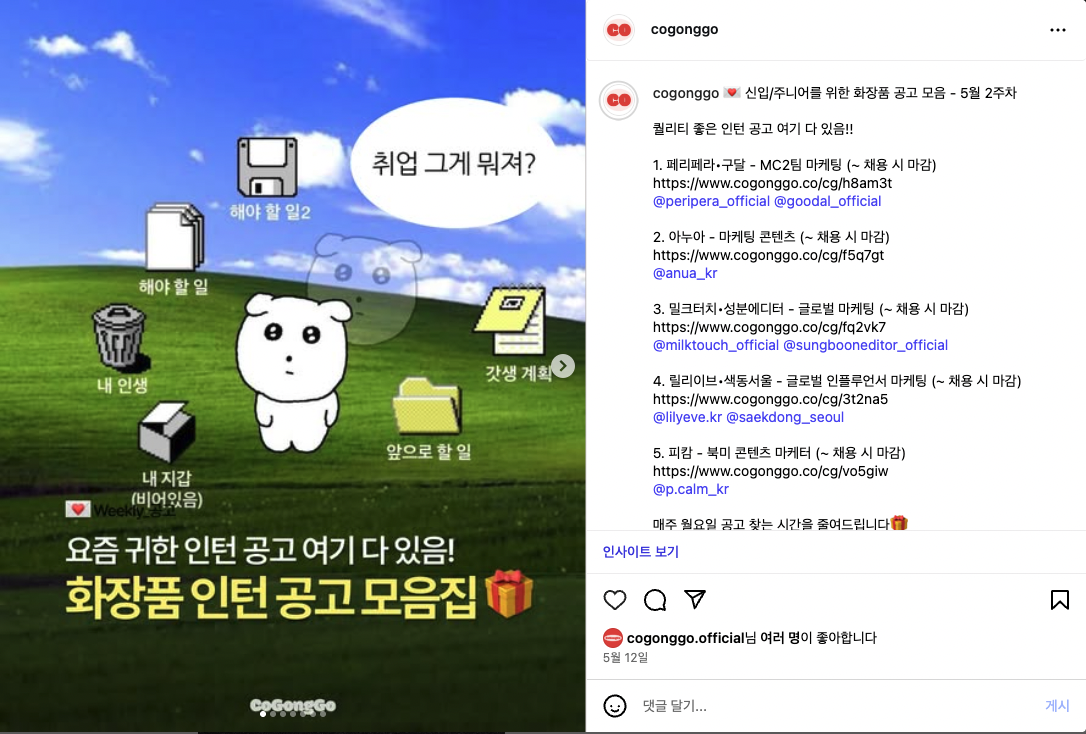 코공고 | 5월 2주차 💌 신입/주니어를 위한 화장품 공고 모음