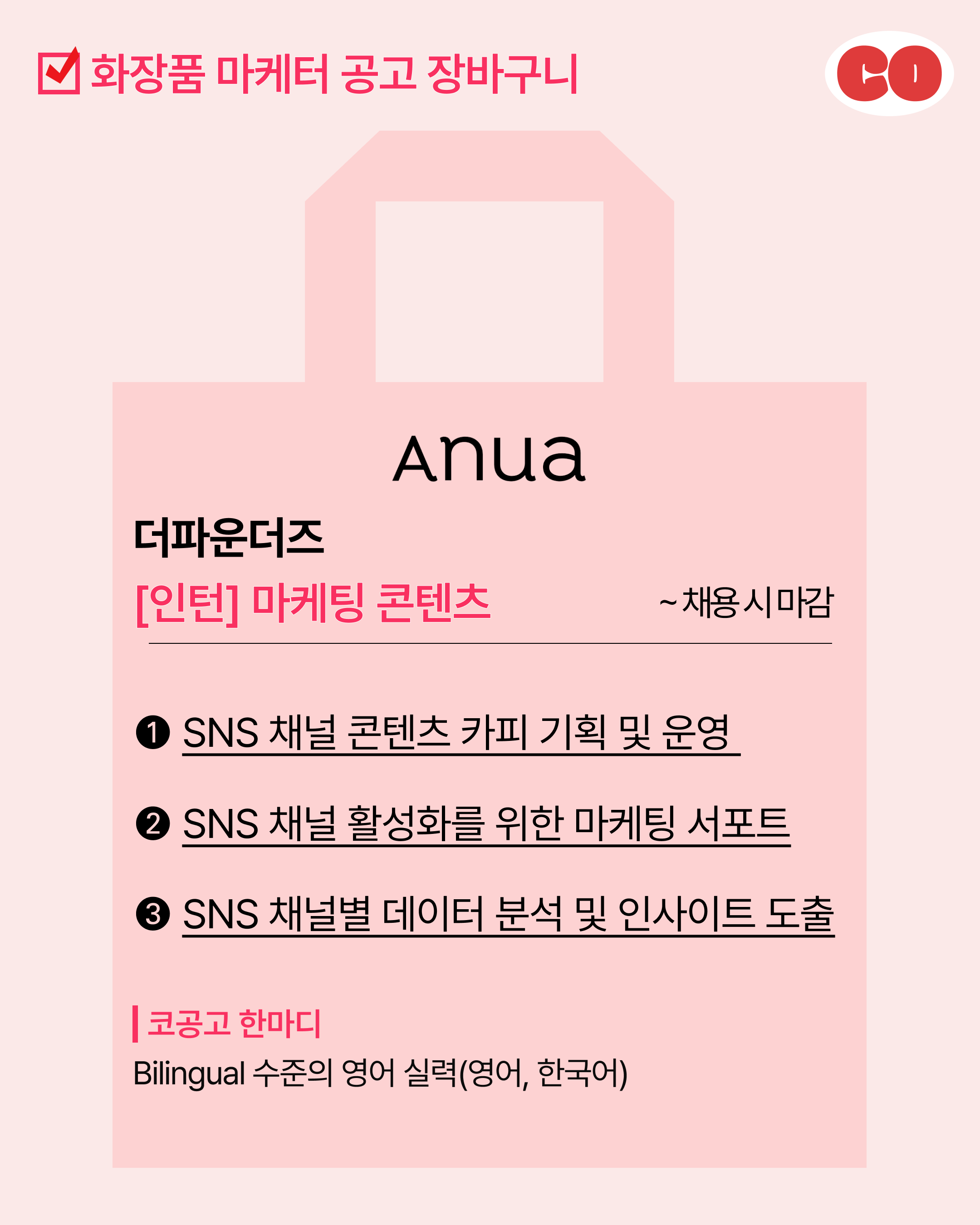 2. 아누아 - 마케팅 콘텐츠 (~ 채용 시 마감) @anua_kr