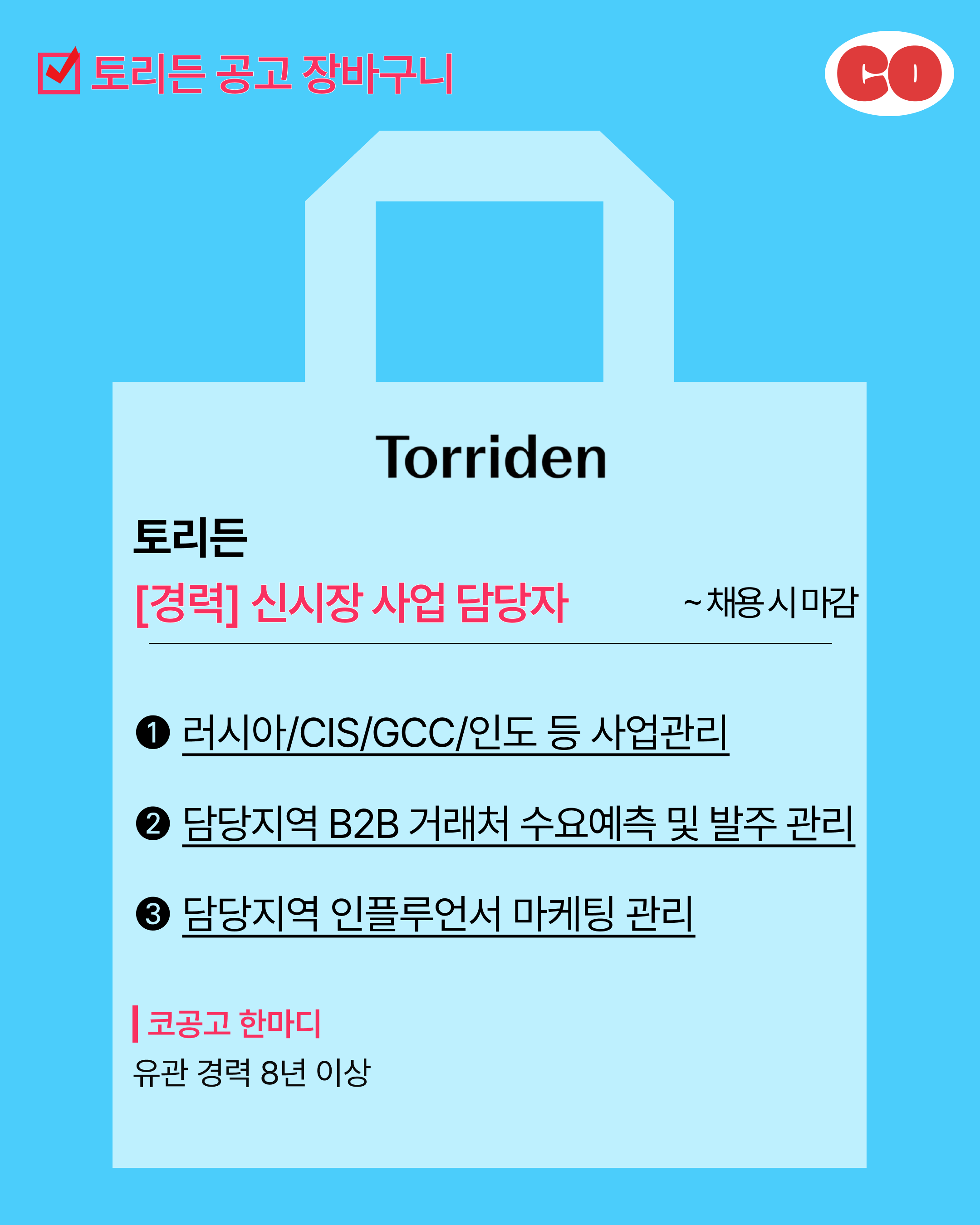 4. 토리든 - 신시장 사업 담당자 (~ 채용 시 마감) @torriden_official
