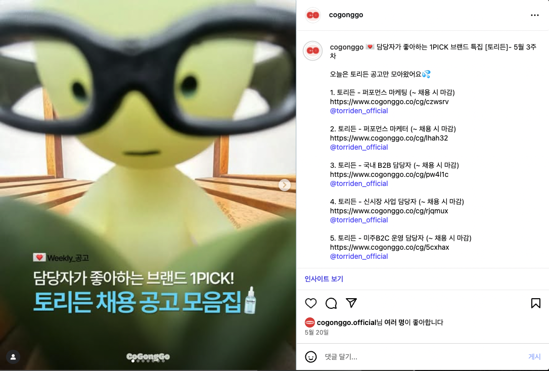 코공고 | 5월 3주차 💌 담당자가 좋아하는 1PICK 브랜드 특집 [토리든]