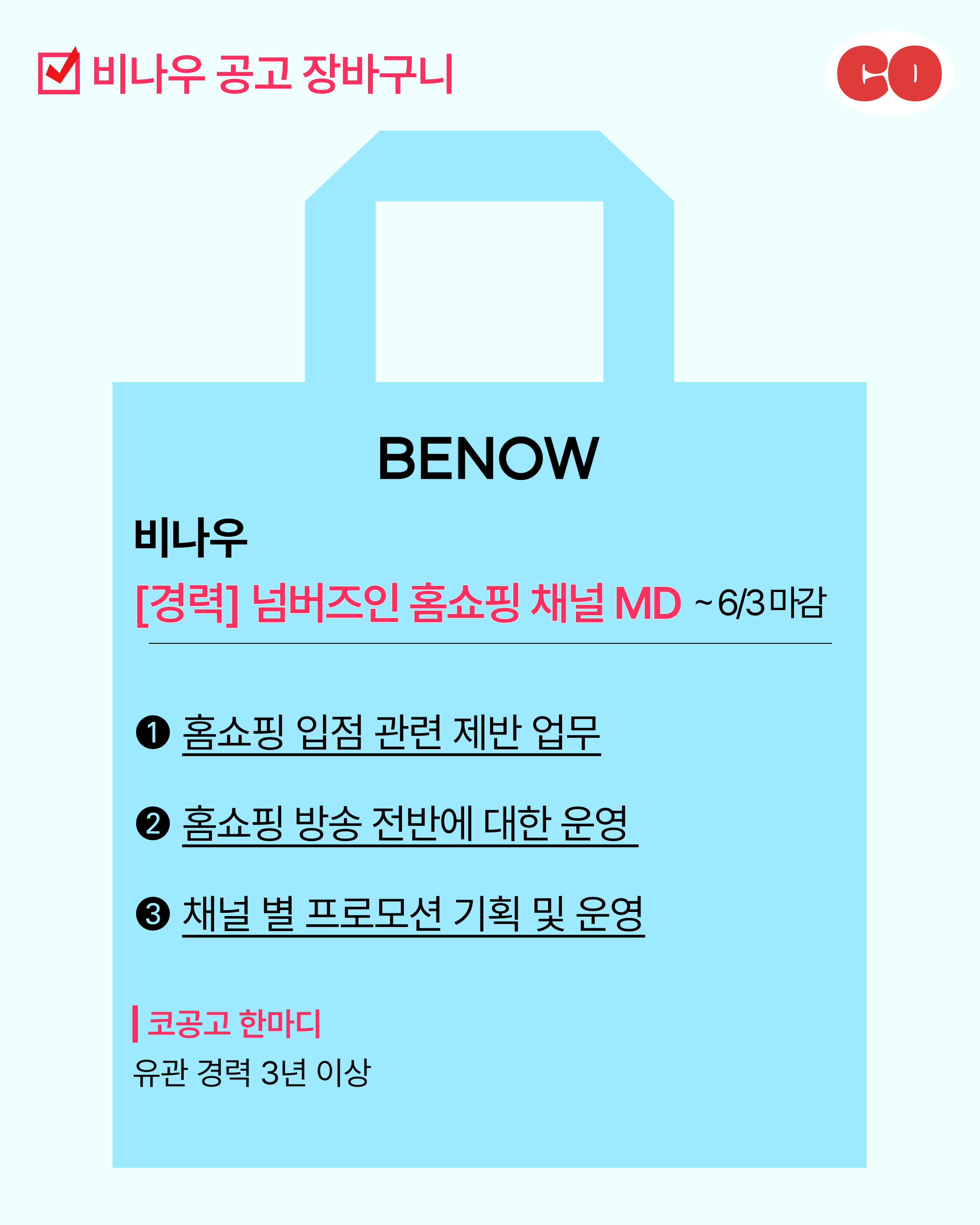 [2분기 집중채용] 넘버즈인 홈쇼핑 채널 MD_일반직