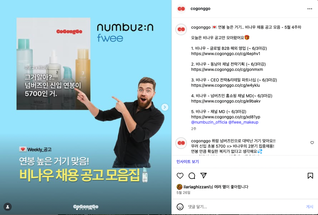 매주 월요일, 가장 새로운 뷰티공고를 만나려면 코공고 인스타그램을 팔로우하세요!