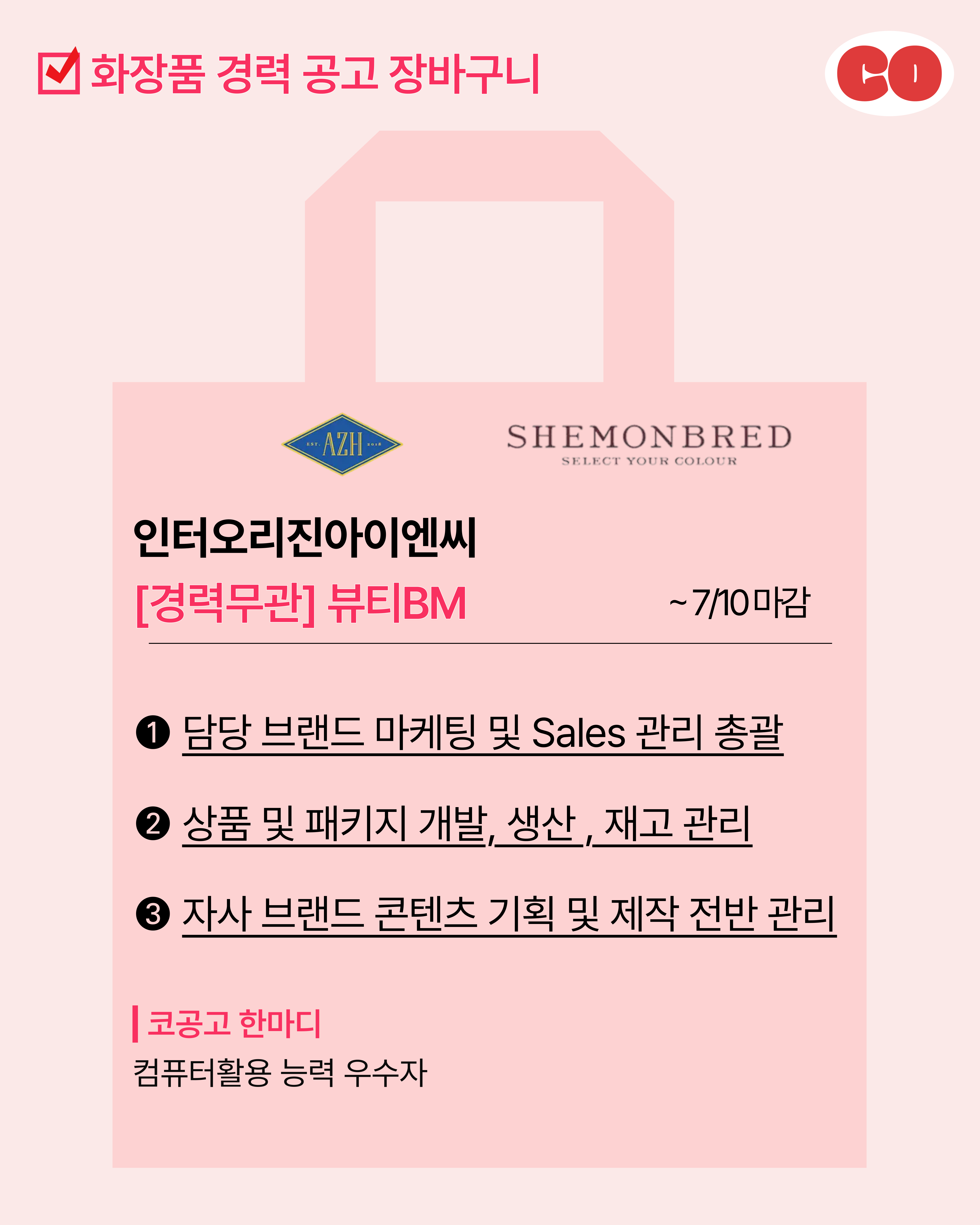 2. 인터오리진아이엔씨 - 뷰티BM (~7/10 마감) @azh_korea @shemonbred_official
